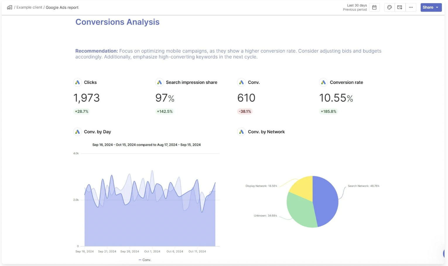 With integrated Google Analytics and reporting tools, you get clear visibility into what’s working. You can track clicks, conversions, and ROI without switching between tabs or spreadsheets. Some ppc reporting tools even sync directly with Google Sheets to make collaboration seamless.